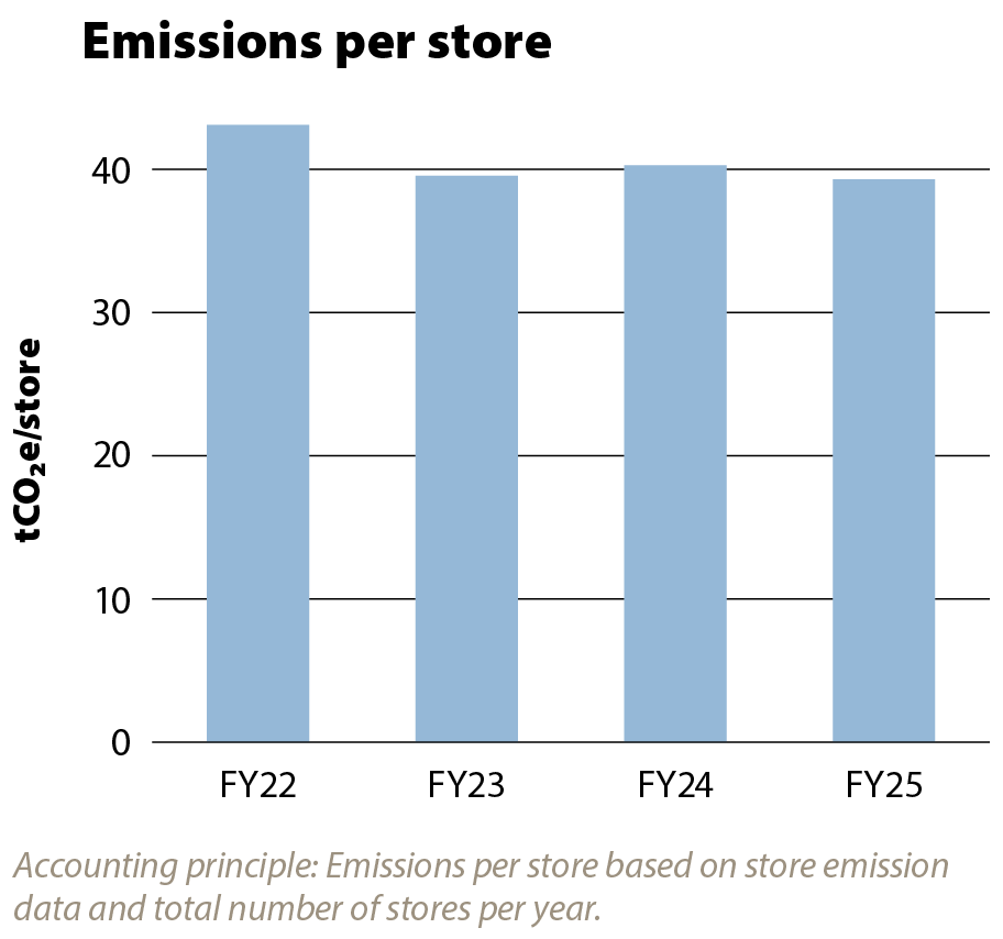 With a strong emphasis on store performance, we achieved a 9% reduction in emissions per store between FY22 and FY25.