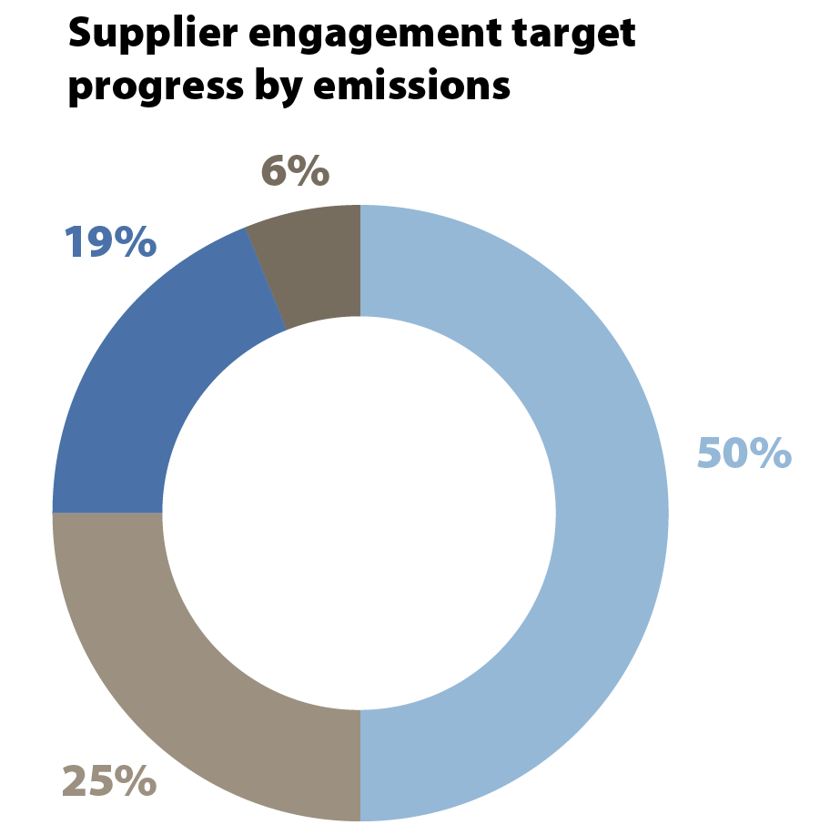 By FY28, we aim for 72.5% of our suppliers - measured by emissions within purchased goods and services - to have science-based targets in place.