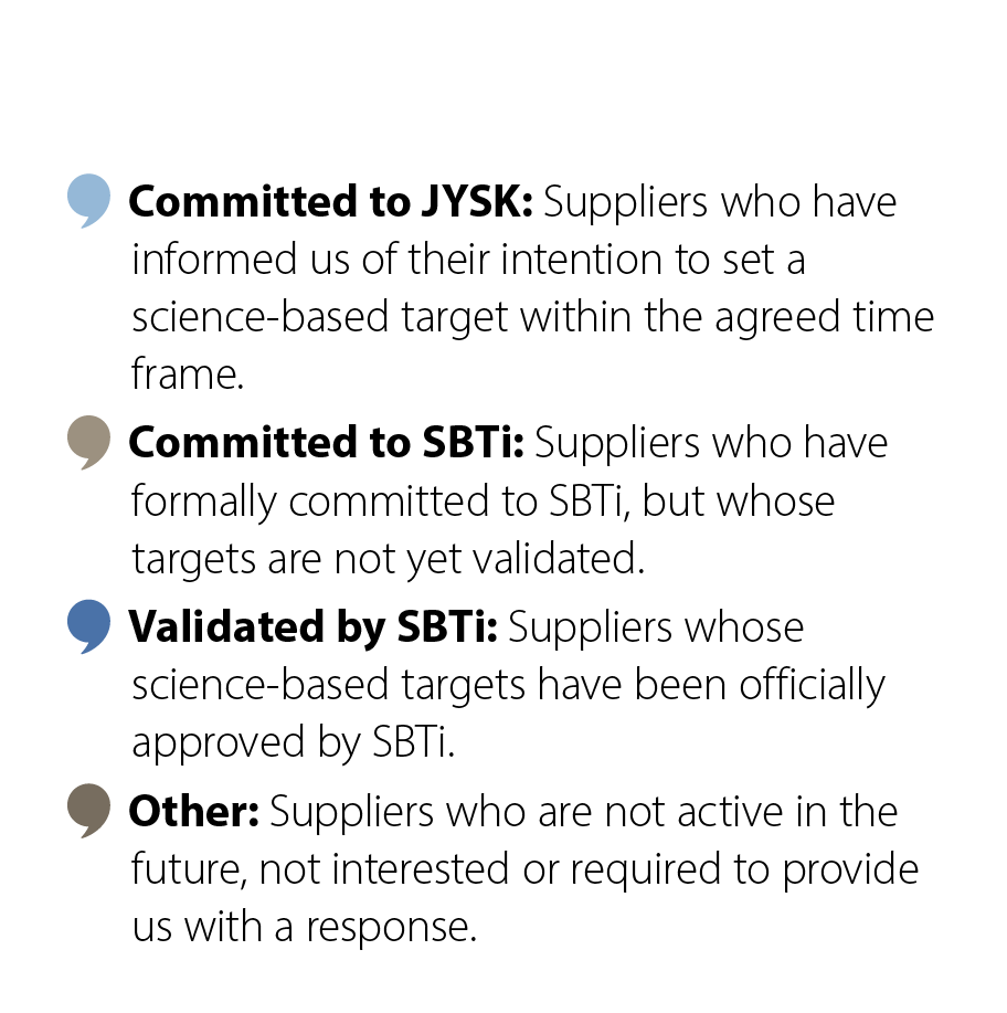 If you would like to know more about our climate accounting, please reach out to: sustainabilityteam@JYSK.com