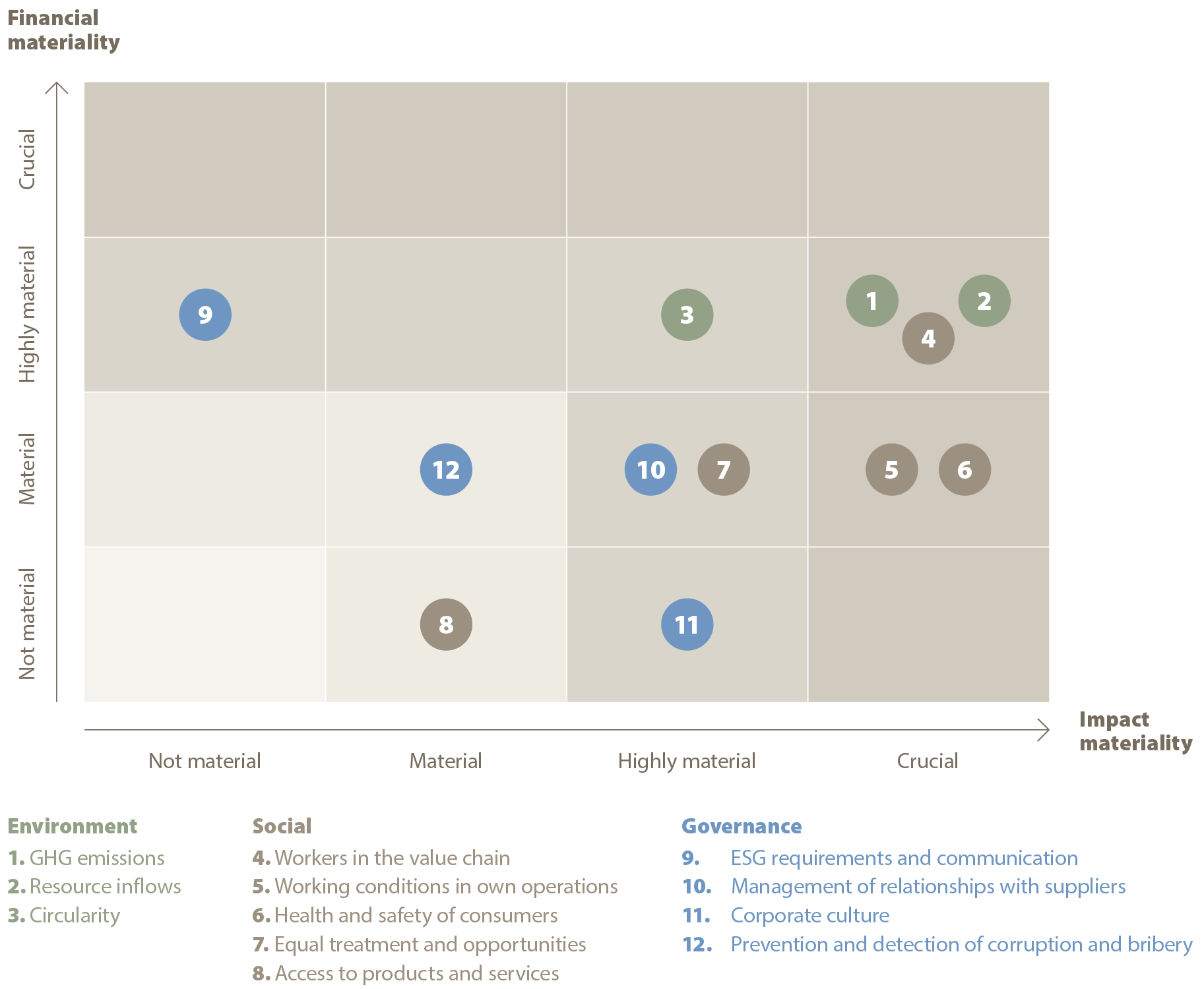 Our actions within sustainability are aligned with the findings of our DMA, as we will prioritise the most material topics.