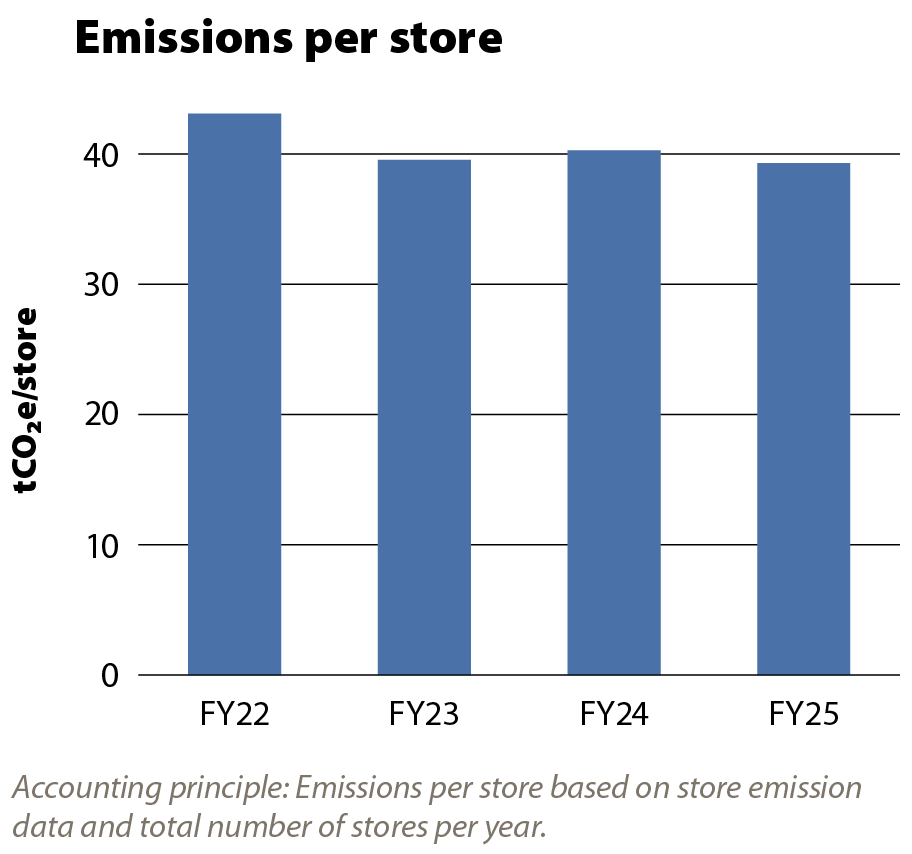 With a strong emphasis on store performance, we achieved a 9% reduction in emissions per store between FY22 and FY25.