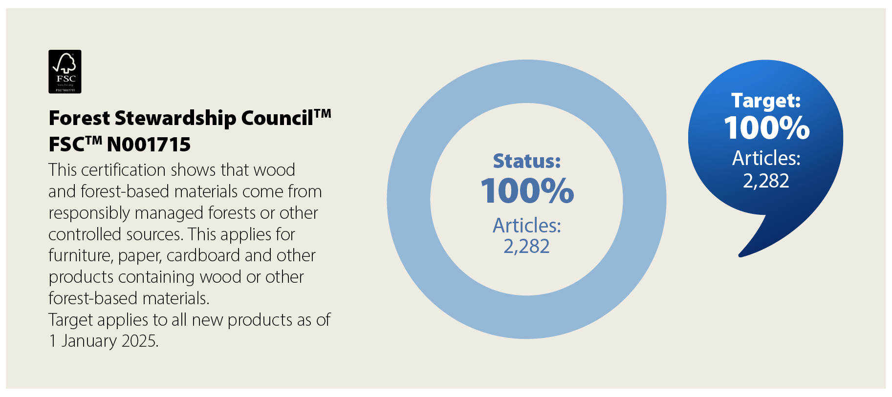 We have ambitious targets for several of our main material groups for certifications and memberships and are proud to have reached 100% for some of these in FY25.